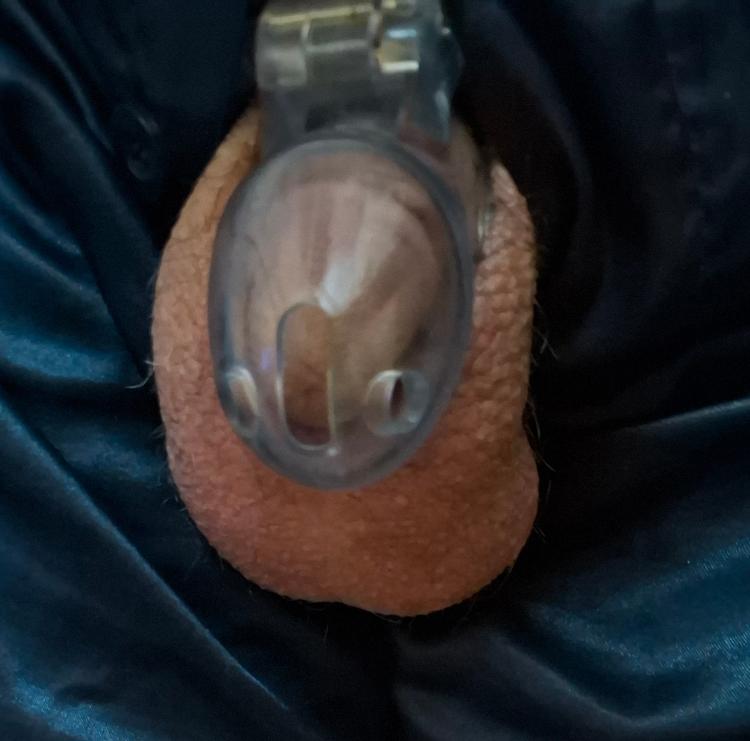 Hoy por orden de mi novia/Ama he tenido que darle placer oral con gel vibrador en la punta del pene y un plug vibrador puesto además de mi jaula